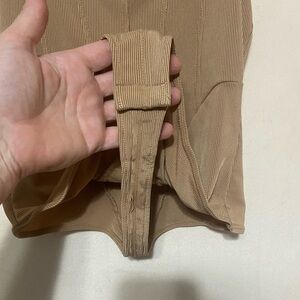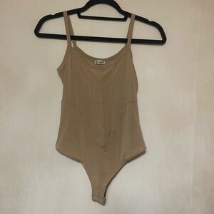 Free People XS tan ribbed exposed seam snap crotch bodysuit NWOT