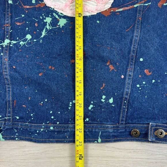 Free People X Tricia Fix Denim Vest Womens Small Blue Paint Splatter