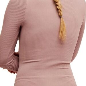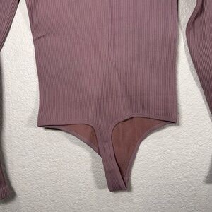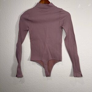 Chic mauve bodysuit with long sleeves. Perfect for layering or standalone style.