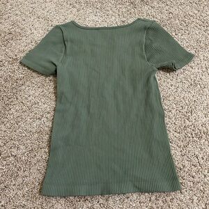 Free People XYZ Recycled Baby Tee Army Green Soft Stretchy Ribbed Shirt Size M/L