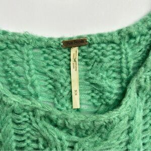 Free People Y2K Green Open Chunky Wool Mohair Blend Cable Knit Sweater Size M
