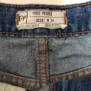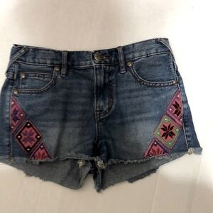 Free People Y2K Low Rise Medium Wash Embroidered Cut off Denim Shorts Size 24