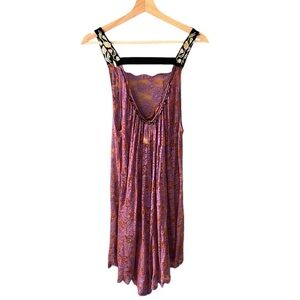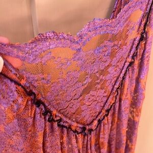 Free People Y2K Whimsigrunge Lace Sheer Tunic Top Embroidered Purple Sz S