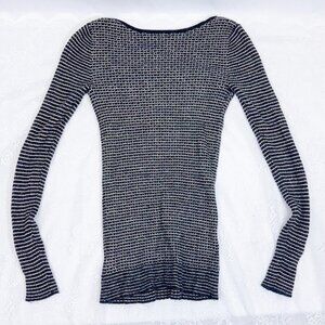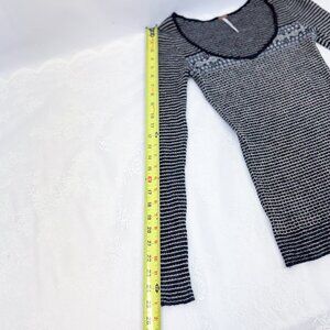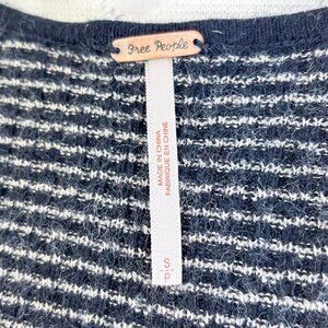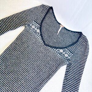 Type: FP Wool blend Sweater Top S Black Gray stripe knit V neck Boho Top