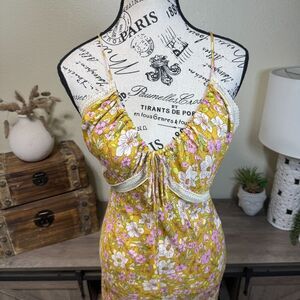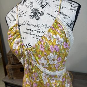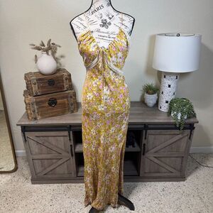 Free People Yellow All I Wanted Maxi Slip Floral Dress Sz M Retro Boho Vacation