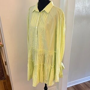 Chic yellow button-up dress with ruffle details. Perfect for a sunny day. Size M.