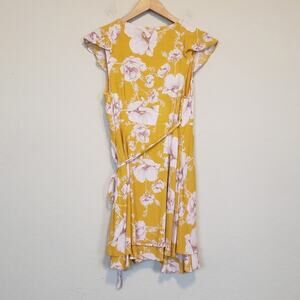 Chic mini dress with vibrant floral pattern. Features a flattering V-neck and ruffled sleeves. Perfect for sunny days.