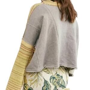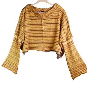 Free People Yellow Gray Catalina Cropped Bell Sleeve Pullover Sweater M