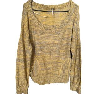 Free People Yellow Gray Wool Blend Knit Pullover Sweater, M
