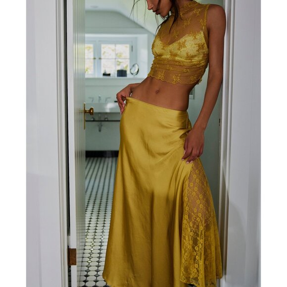 Elegant yellow lace chemise with matching slip. Delicate and stylish design. Perfect for intimate wear.