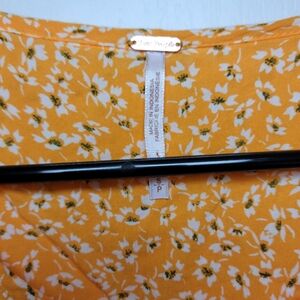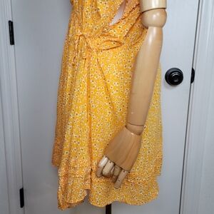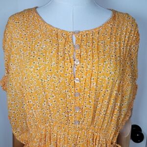 Free People Yellow Oversized Button-Up Ditsy Spring Floral Dress Size Small