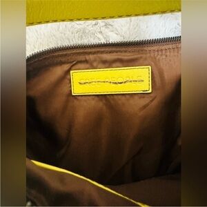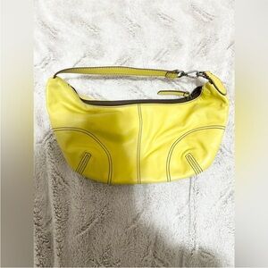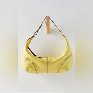 Bright yellow shoulder bag. Sleek design with contrast stitching. Perfect for casual outings.
