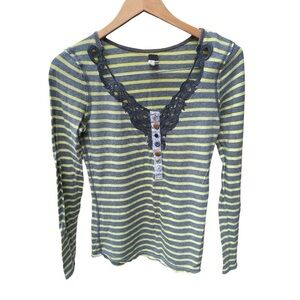 Free People Yellow/Gray Striped Call Back Henley Top I Size: S