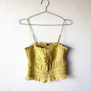 Free People Yellow-Green Cami Tank Top Button Up Women's Small