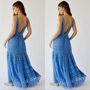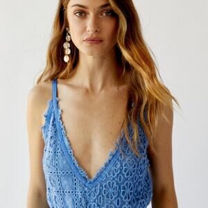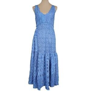 Free People Yesenia Medium Blue Crochet Patchwork Dress