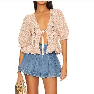 Free People Yesterday Cardi Cardigan Knit Cropped Sweater Toast Beige Size XS