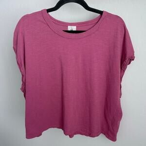 Free People You Rock Tee Size Large Pink Boxy Relaxed Boho Casual Cropped