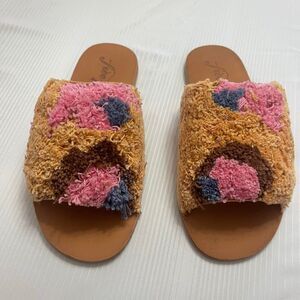 Free People Yuma Woven Shag Color Block Mules Sandals Slides Slippers 36 US 6