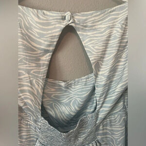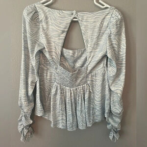 Free People Zebra Print Babydoll Peasant Top- Light blue/Ivory Size XS