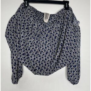 Free People Zebras Puffer Cropped Off The Shoulder Top Women's Size Medium