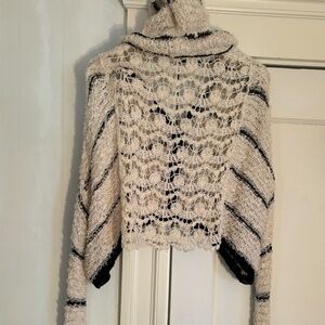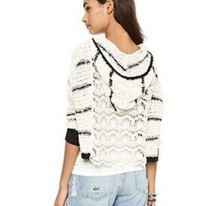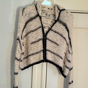 Free People ivory cream black striped zipper front cropped Cecilia hoodie sweater cardigan