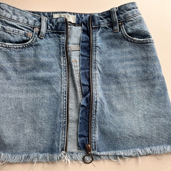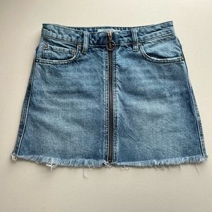 Free People Zip It Up Jean Mini Skirt size 24 Blue Front Zip Raw Frayed Hem