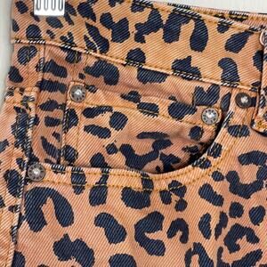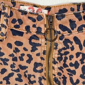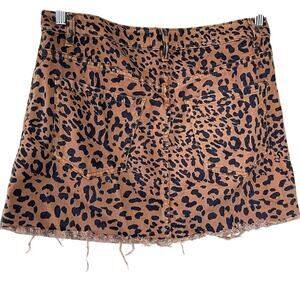 Free People Zip It Up Leopard Animal Print Mini Zipper Denim Skirt Size 30. Burnt orange\Brown with black leopard print