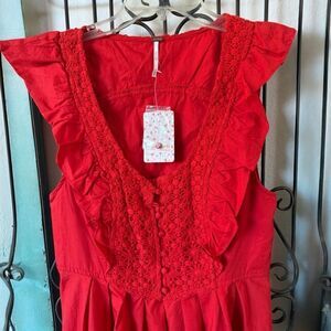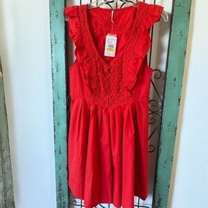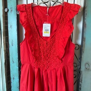 Free People all cotton mini dress in red! Beautifully whimsical side pockets Med