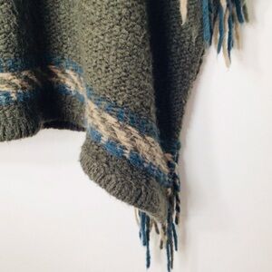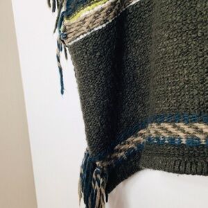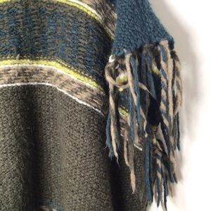 Free People angora wool poncho sweater women xs green multicolor soft knit oversize hobo feminine rare
