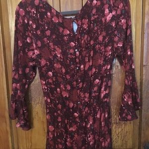 Never worn! Beautiful ruffled sleeves and leg. Fabric covered buttons run up the back. Fits true to size. Not overly large like FP can sometimes run.
