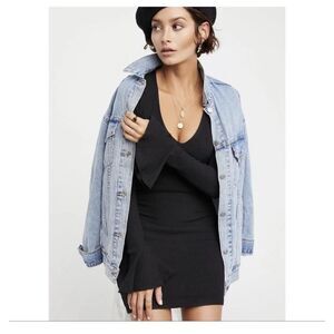 Free People black Ribbed Bodycon mini Dress w/Flare Sleeves size L