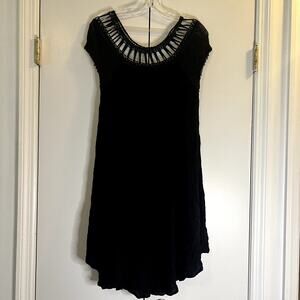 Free People black crochet trim sleeveless boho mini dress size XS rayon