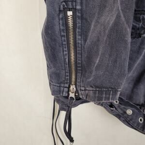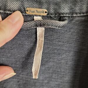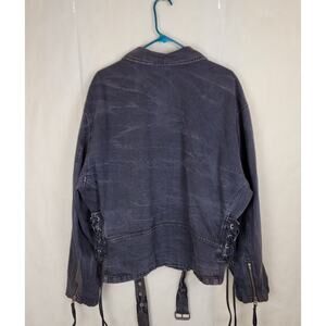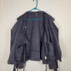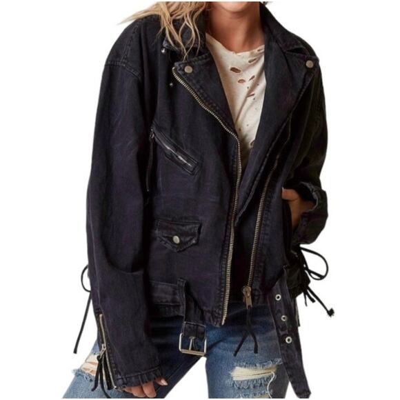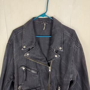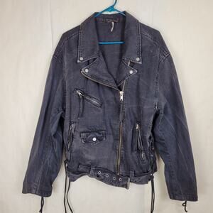 Free People black denim moto jacket Size Large Retro Biker Indie Grunge