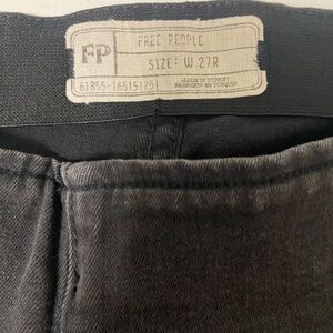 Three people black denim jeans size 27 regular inseam is 29 inches. They are flare legged and tight fit