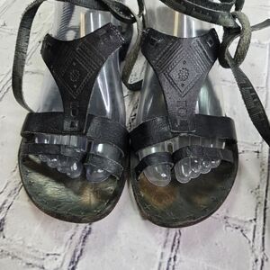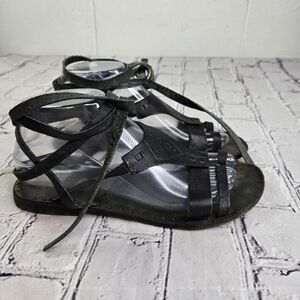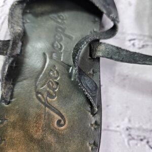Free People black leather boho hippie gladiator ankle wrap sandals