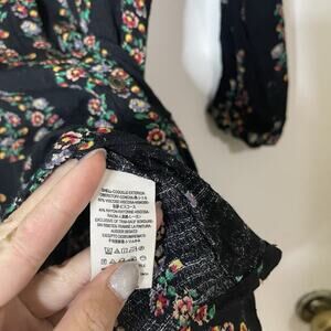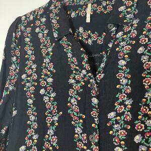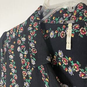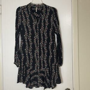 Free People black multi floral long sleeve button front ruffle hem dress Small