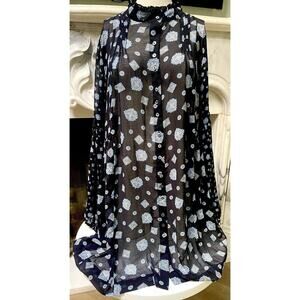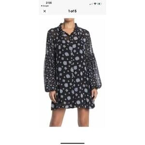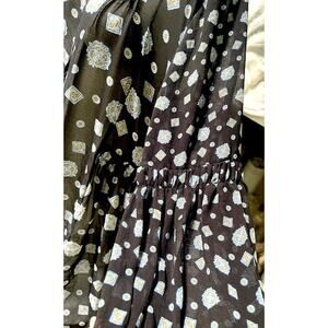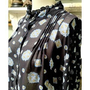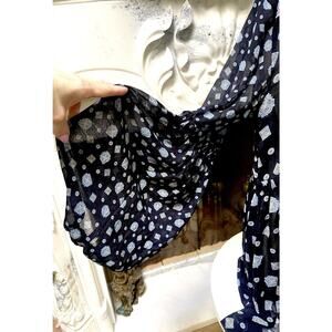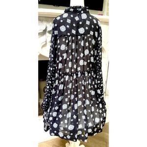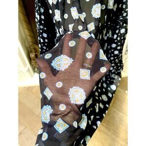 Free People black paisley Sheer Mock Neck Mini Dress flare top sz L Black