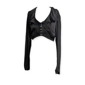 Free People black satin cropped hook & Eye blouse