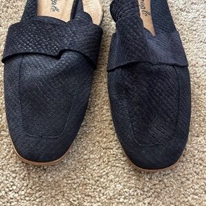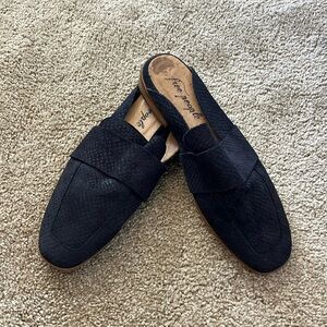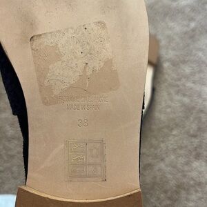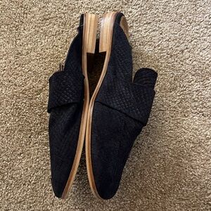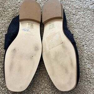 In good used condition lots of life left. Small heel. Black mules. Small distressed spots where size sticker was taken off, could probably be removed, didn’t try because it doesn’t show when feet are in the shoes.
