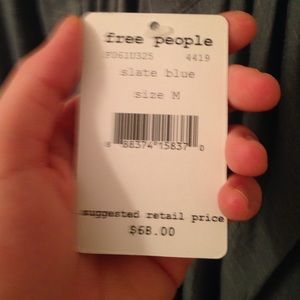 Medium Free People blouse in slate blue. Super cute and flow-y. Hangs low in the back. Never been worn and still has the tags.