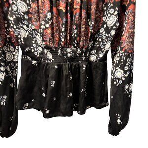 Free People blouse Sz S Long Sleeve Floral Blouse With Knot Front Design & V-Nec