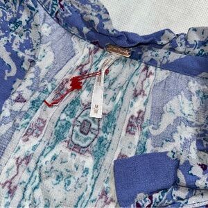 Free People blue and white floral button down tunic/dress size medium. In preloved but great condition. Bell sleeves. Lay flat measurements pit to pit 20, sleeve length 21, and length from shoulder to bottom of hem 31 inches.