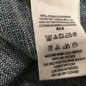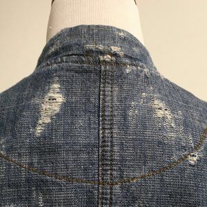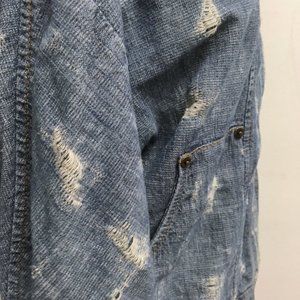 Size small..blue cotton denim ..destroyed effect ..zips with snap overlays..100% cotton.