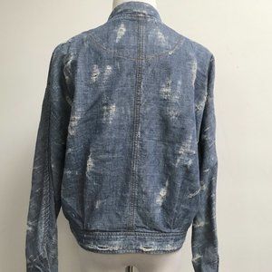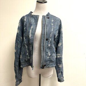 Free People blue denim distressed zip moto bomber cotton jacket New S