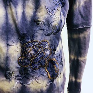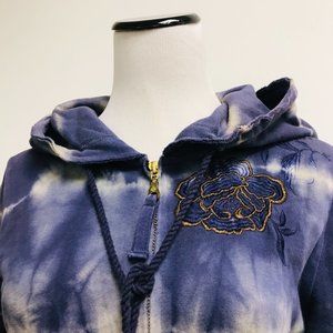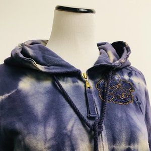 Free People blue purple tie dye embroidered zip hoodie sweatshirt L