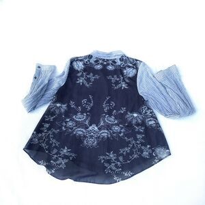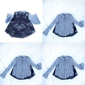 Free People Xs Women’s Button Front Shirt Striped Floral Back Long Sleeve.