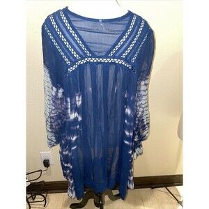 Free People blue tie dye Loose tunic top Blouse size Small. M243
