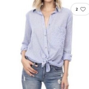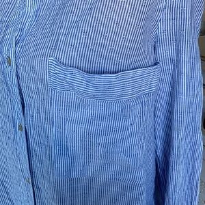 Great condition Free People blue white thin stripe button down long sleeve shirt. Split back. Hi lo.