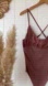 Features: Soft fabrication, V-neckline with seaming at bust, adjustable crisscross straps, high-cut legs, smocked back band
