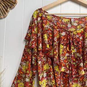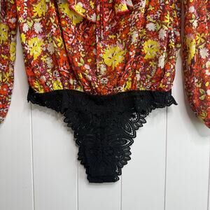 Free People bodysuit floral ruffled long sleeve bell sleeve polka dot chiffon XS
